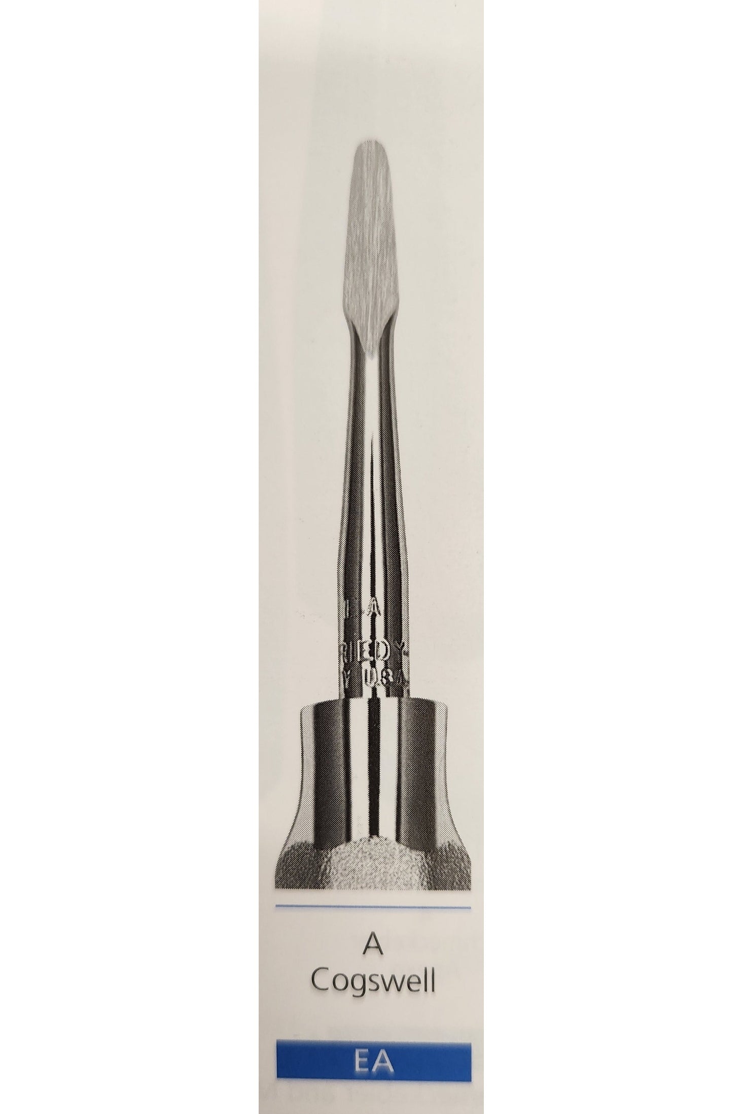 This *CLEARANCE* Elevator Cogswell A by Hu-Friedy is a precision instrument crafted from the highest-grade materials. It includes an ergonomic handle and narrow blade for accuracy, an angled shank for ease of use, and an ultra-sharp finish for efficient work. Its superior design is ideal for scaling, root planing and other periodontal procedures.